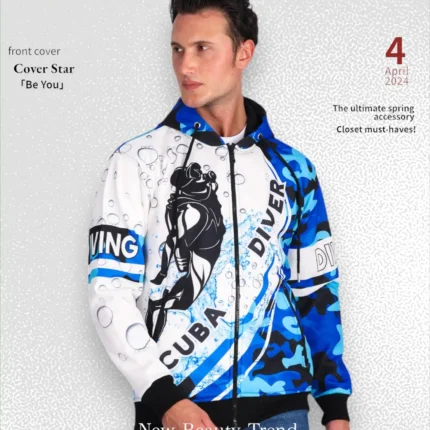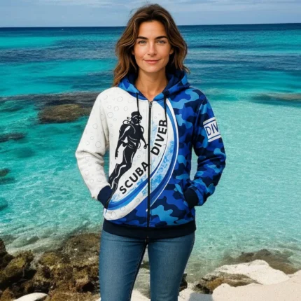 Dalış Tutkunları İçin 3D baskılı Unisex Relax Fit Rahat Kesimİçi Polarlı Çift Cepli Fermuarlı Kapüşonlu Sweatshirt