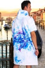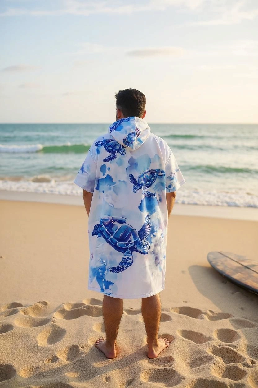 Caretta Caretta Color Dijital Baskılı Pamuk Panço