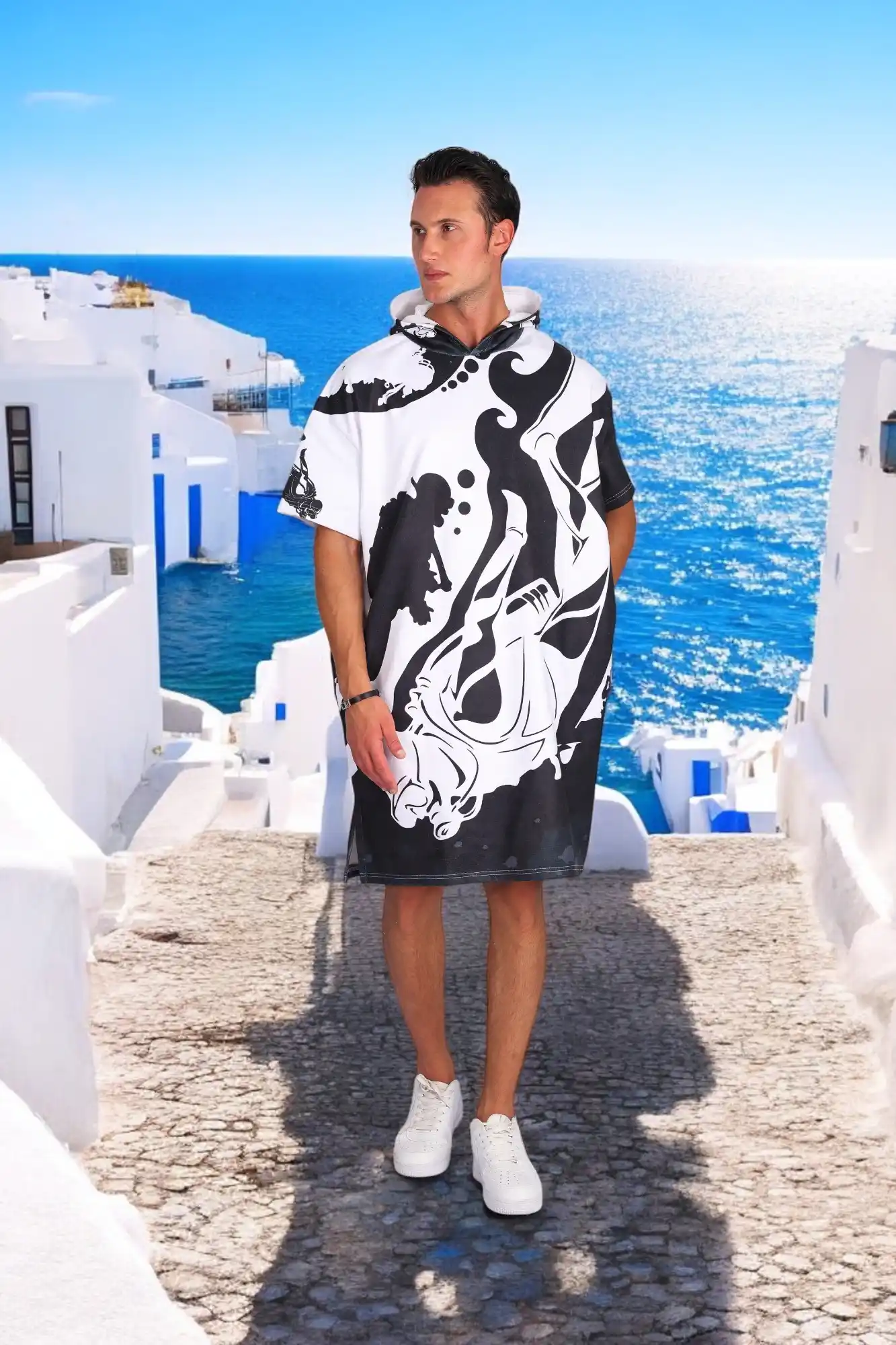 Diver Color Dijital Baskılı Pamuk Panço