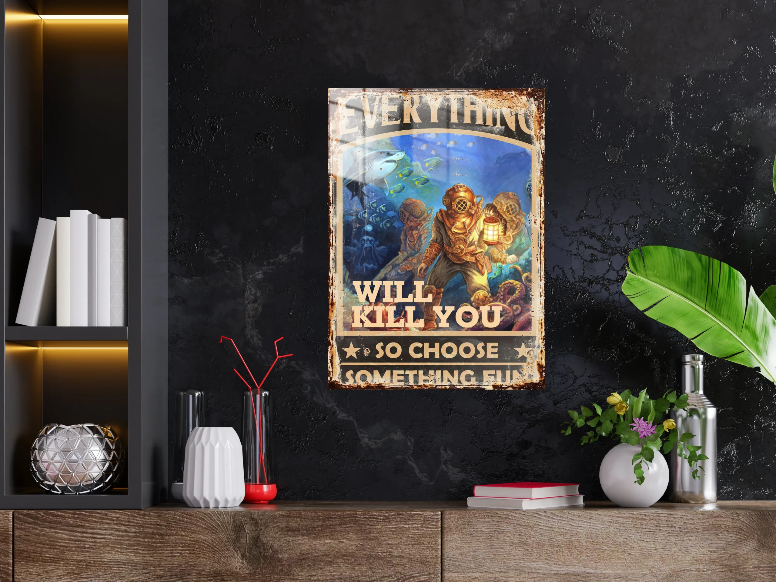 Evinize Sanat Katın: Şık ve Dayanıklı Scuba,Deniz,Undervater Temalı Aleminyum Metal Poster