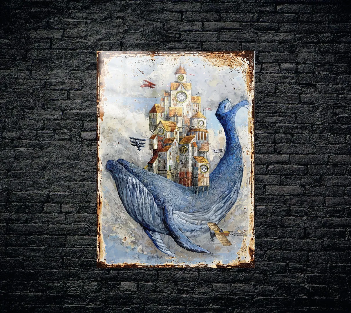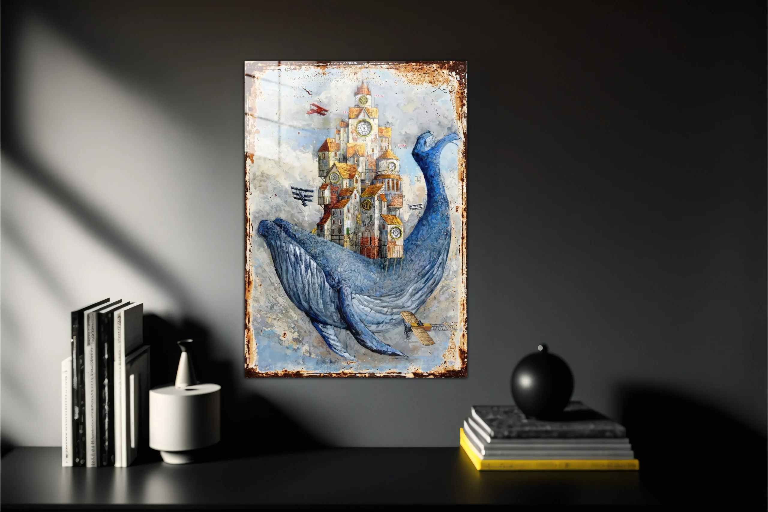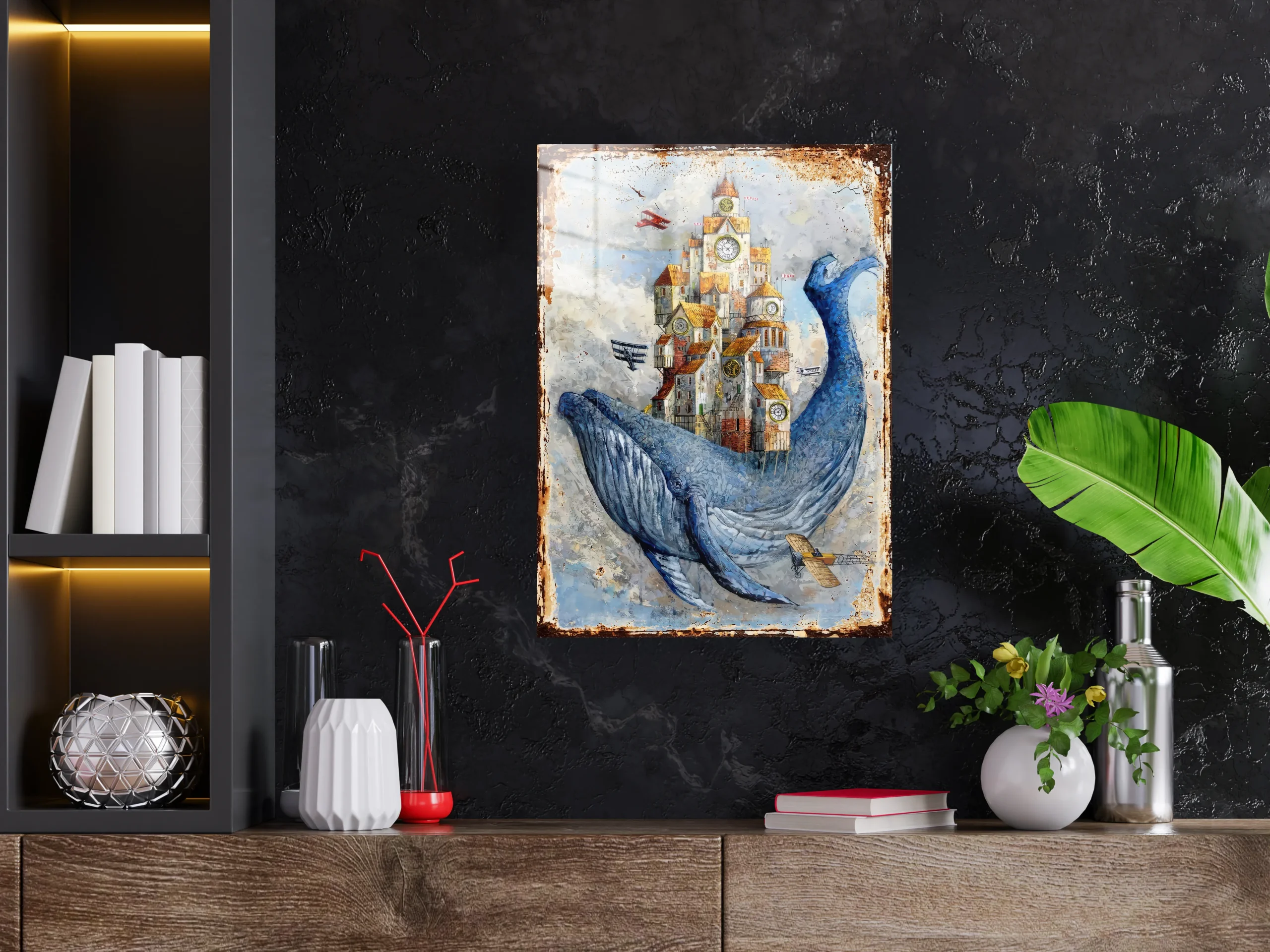Fütüristik Whale Vintage Aleminyum Metal Tablo