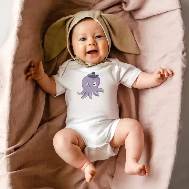 Gri Ahtapot Beyaz Pamuklu Bebek Zıbın