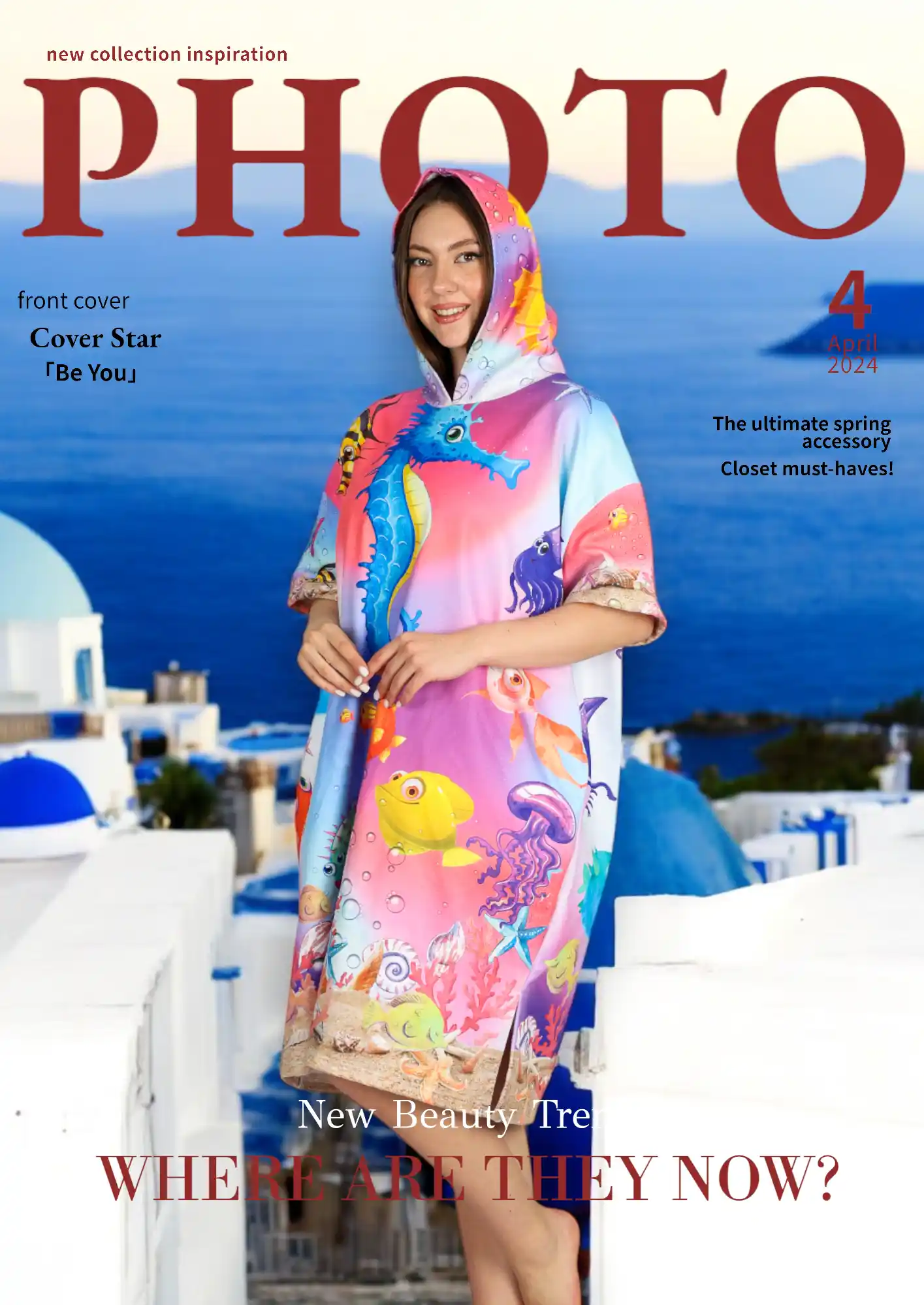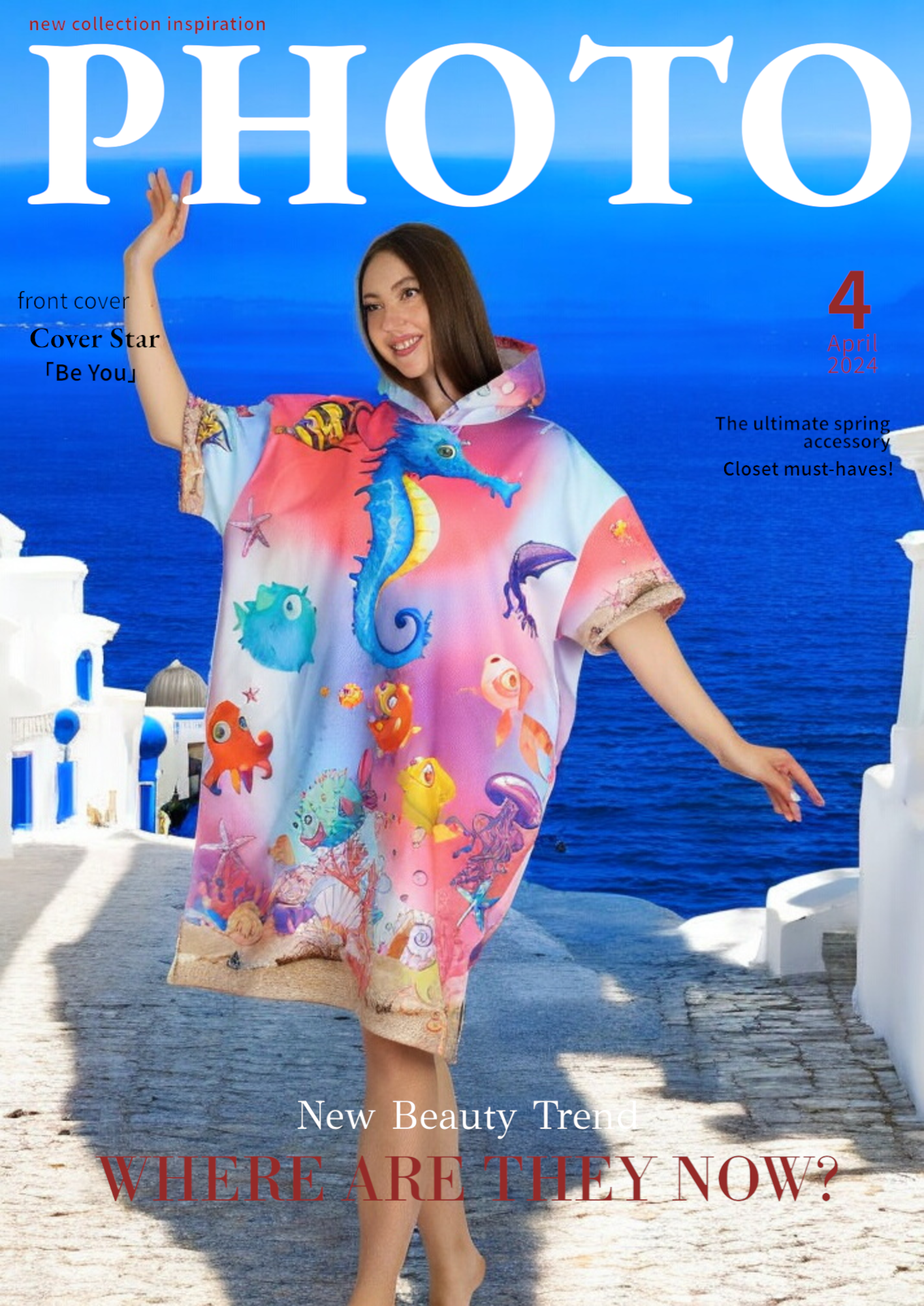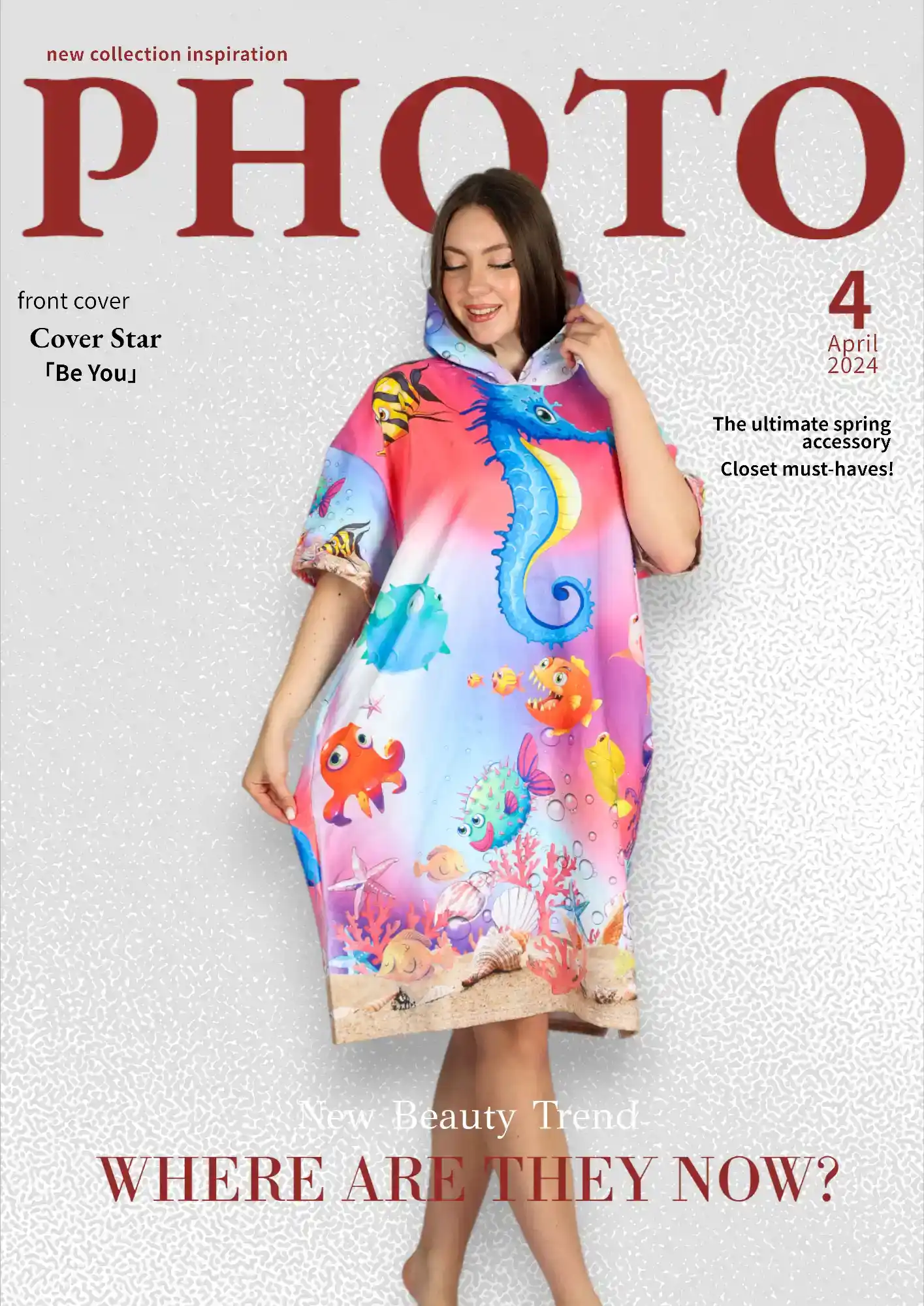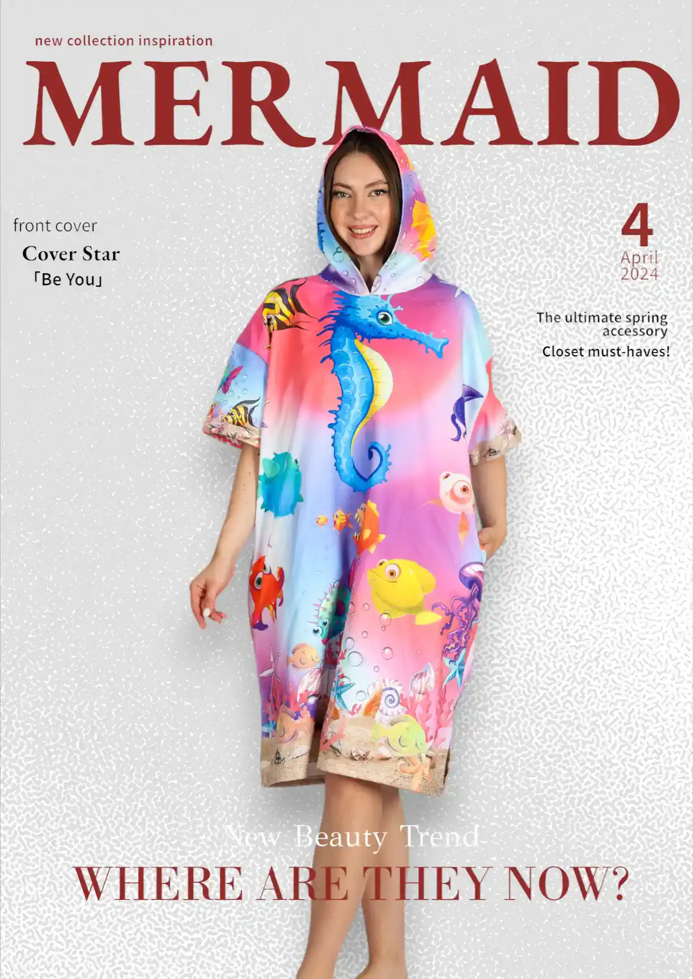 Neşeli Sualtı Color Dijital Baskılı Pamuk Panço