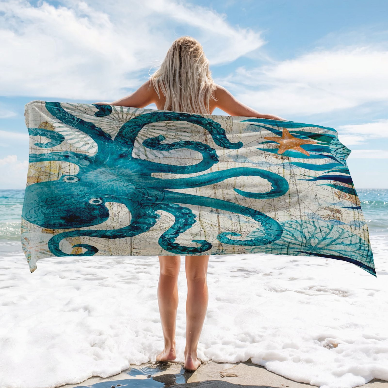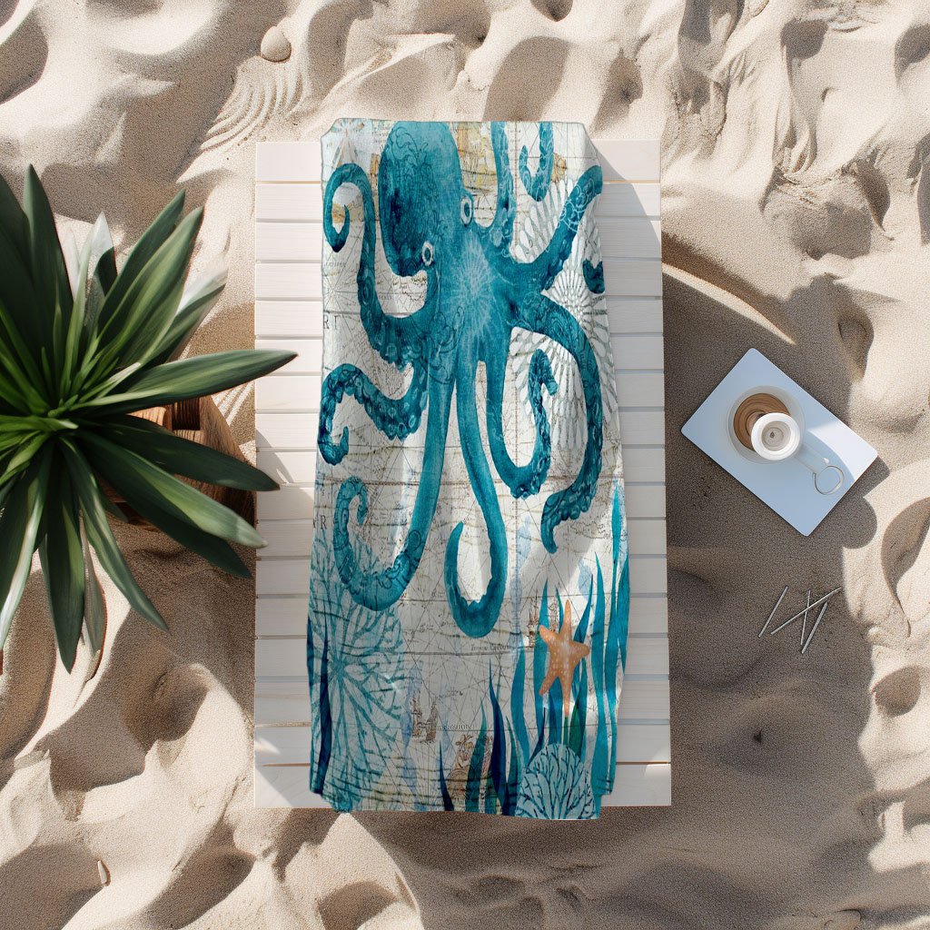 Octopus Microfiber Pamuk Plaj Havlu