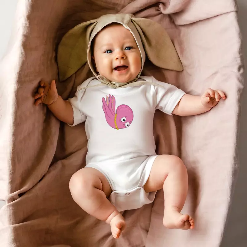 Pink Ahtapot Beyaz Pamuklu Bebek Zıbın