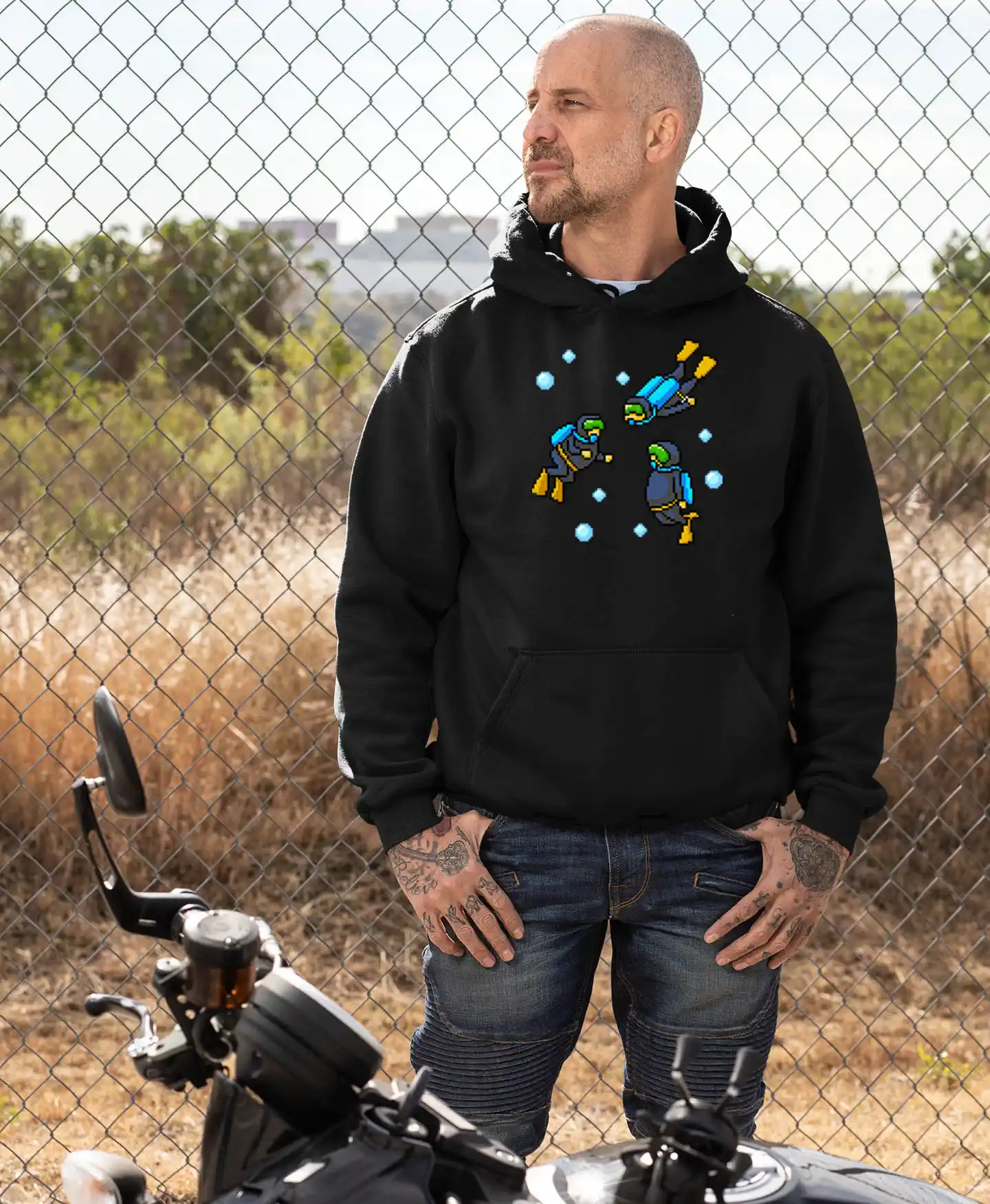 Pixel Scuba Üç İplik Pamuk Hoodie-Kapşonlu