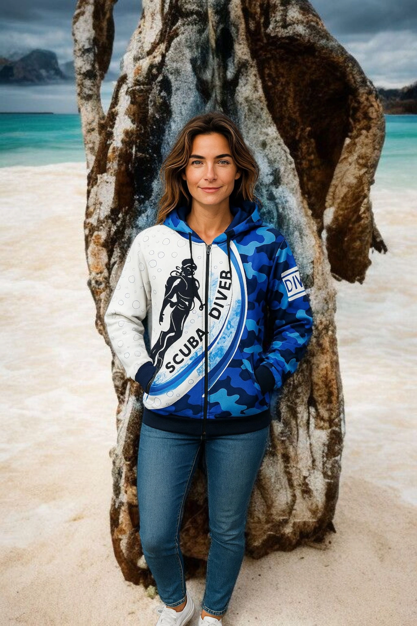 Scuba Diving 3D Dijital Full Baskılı Unisex Hoodie