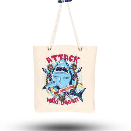 Shark Attack Baskılı Kanvas Plaj Çantası