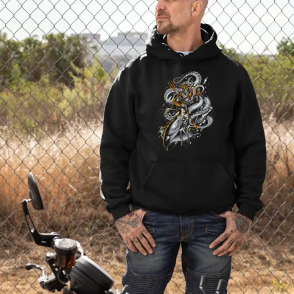 Poseidon Octopus War Unisex 3 İplik Pamuk Hoodie-Kapşonlu