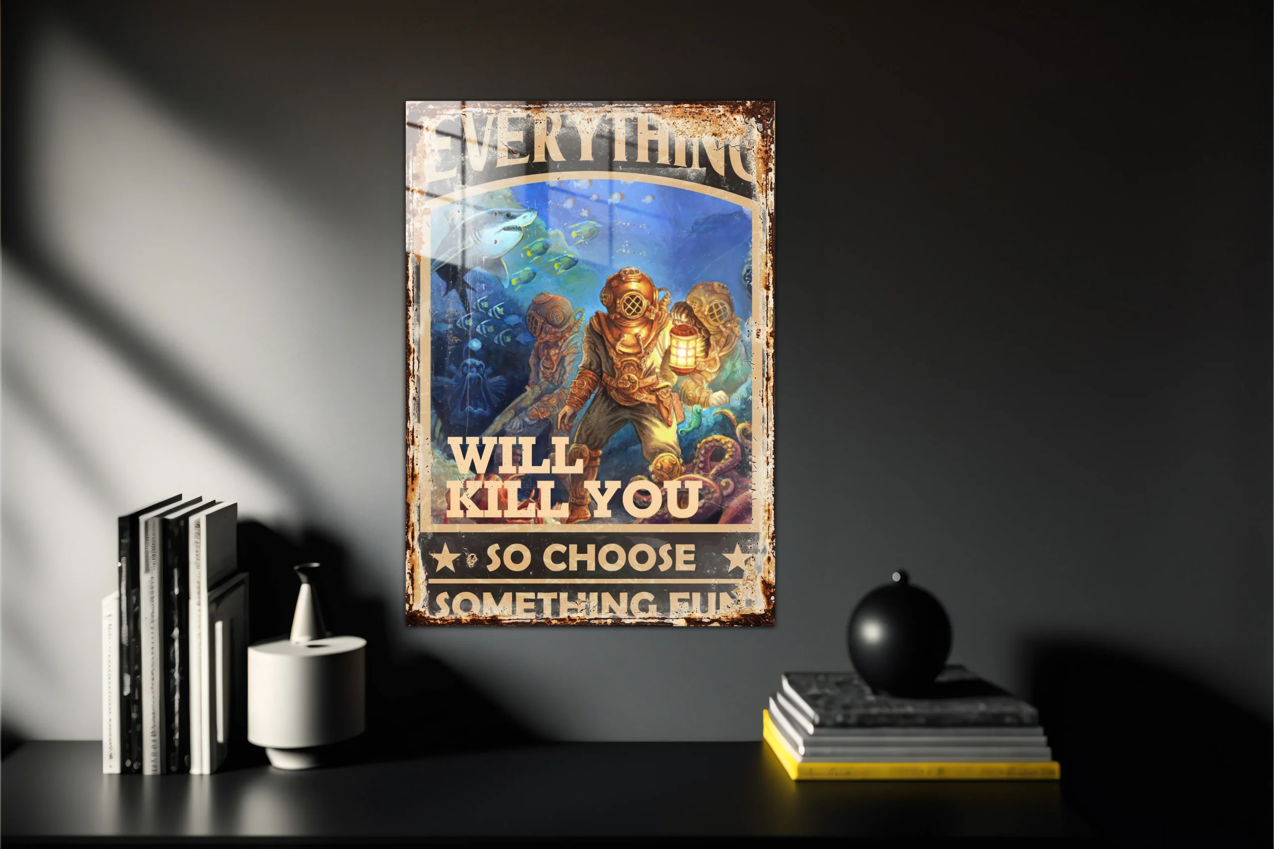 Evinize Sanat Katın: Şık ve Dayanıklı Scuba,Deniz,Undervater Temalı Aleminyum Metal Poster