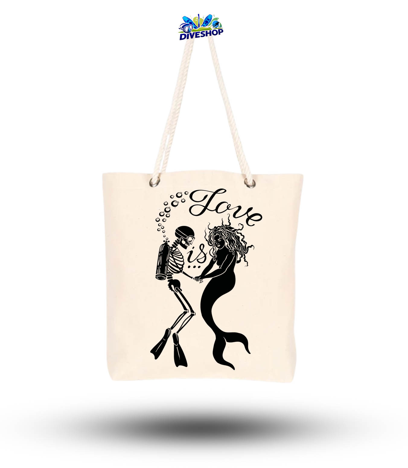 Love Mermaid Baskılı Kanvas Plaj Çantası
