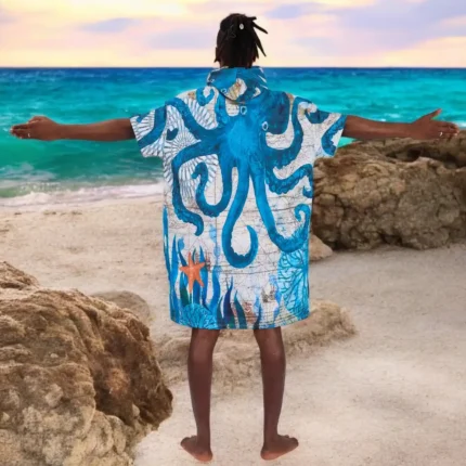 Pratiklik için tasarlanan her ponço, altında değişim yapmak için yeterince büyük, hızlı kuruyan, süper emici, antimikrobiyal ve hafif.