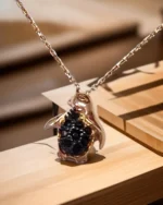 Penguen Rose Kaplama Siyah Taşlı İthal 925 Ayar Gümüş Kolye