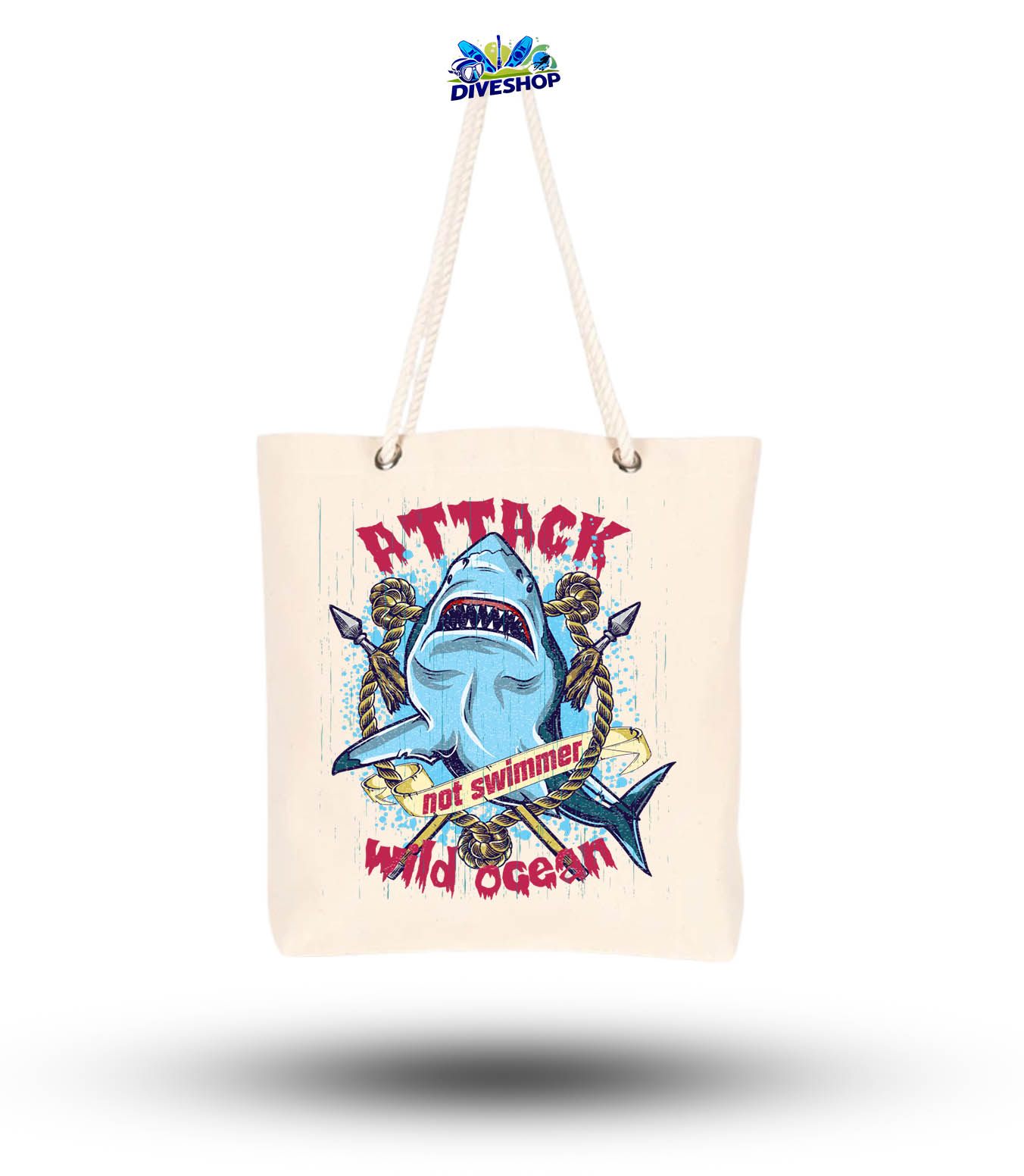 Shark Attack Baskılı Kanvas Plaj Çantası