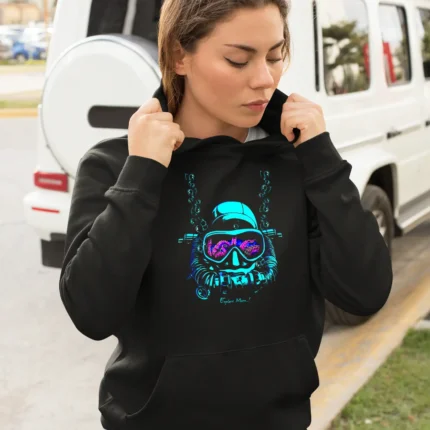 Octopus Mask Unisex 3 İplik Pamuk Hoodie-Kapşonlu