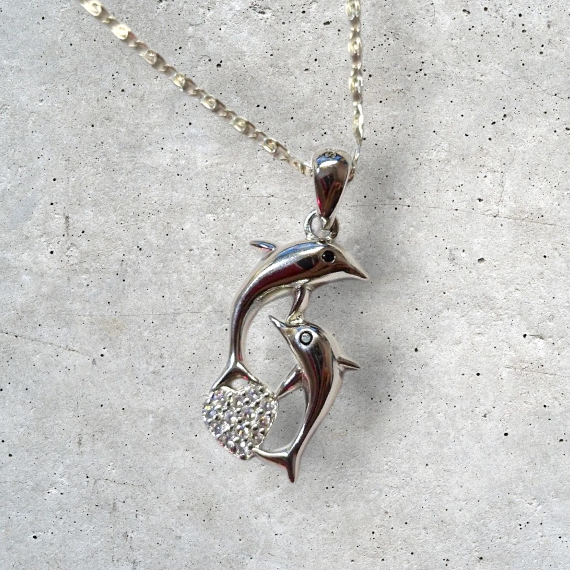 Taşlı Yunuslar Gümüş Kolye Ucu