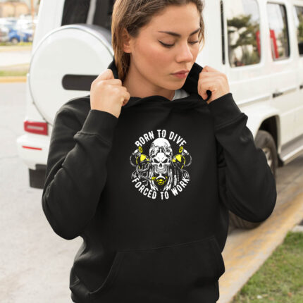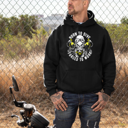 Born To Dive Scull Unisex 3 İplik Pamuk Hoodie-Kapşonlu
