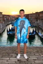 Whale Shark Color Dijital Baskılı Pamuk Panço