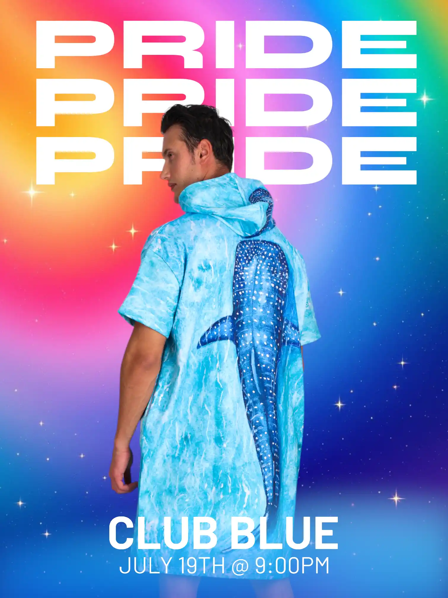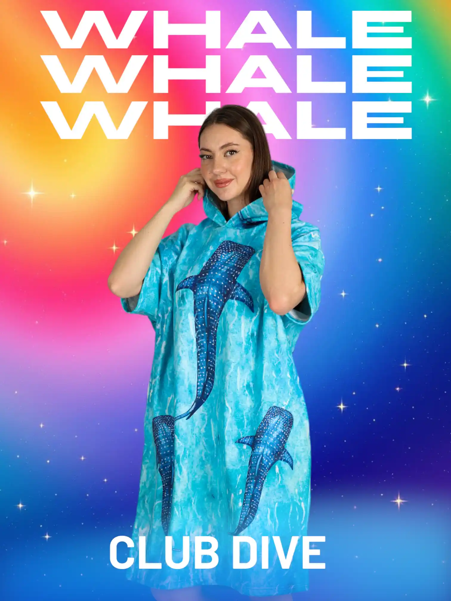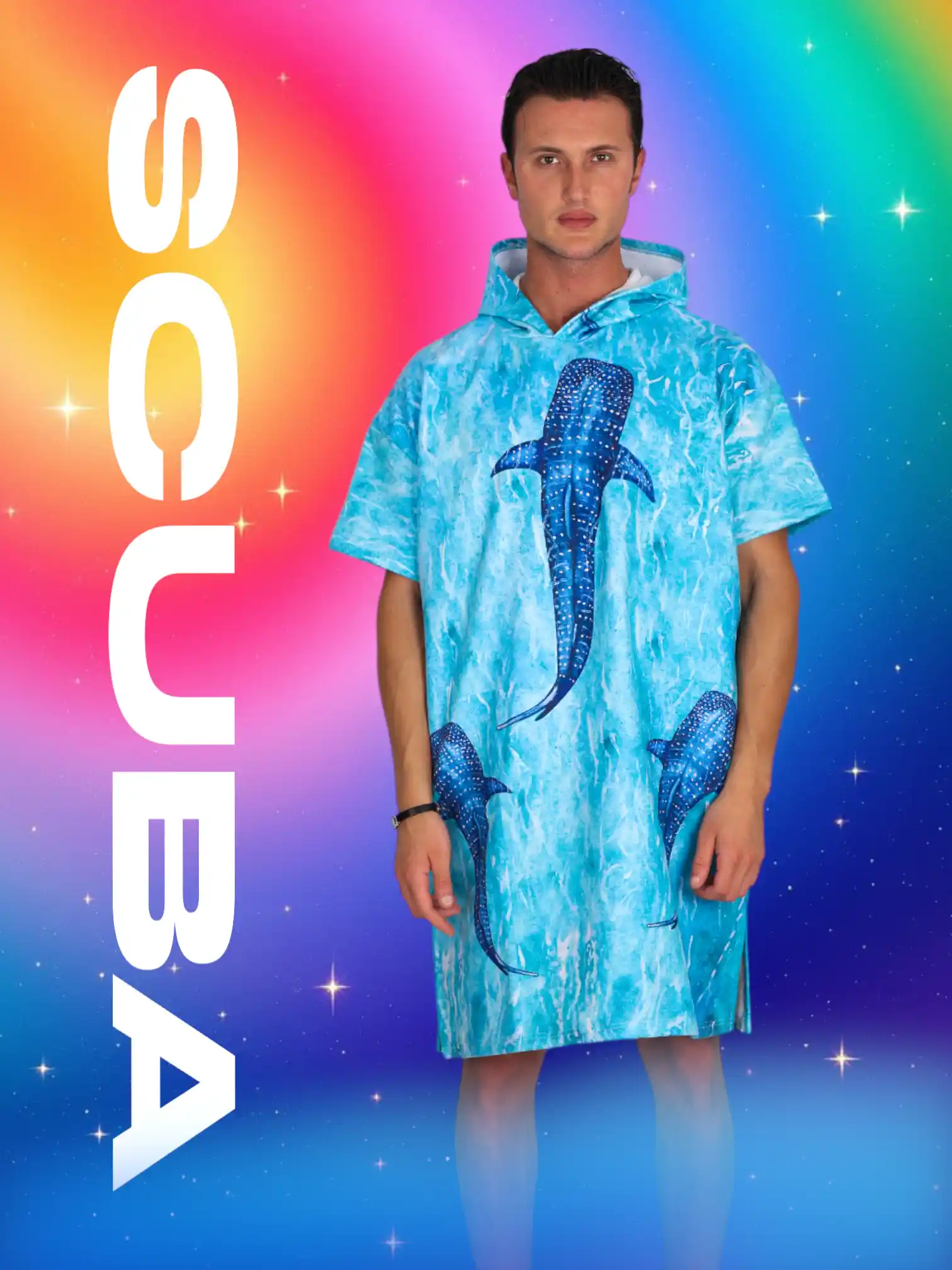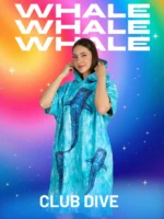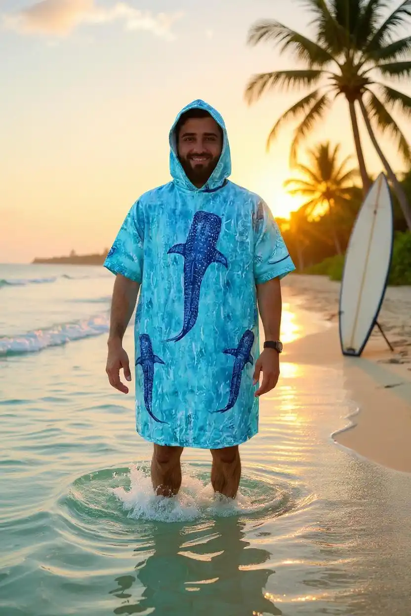 Whale Shark Family Color Dijital Baskılı Pamuk Panço